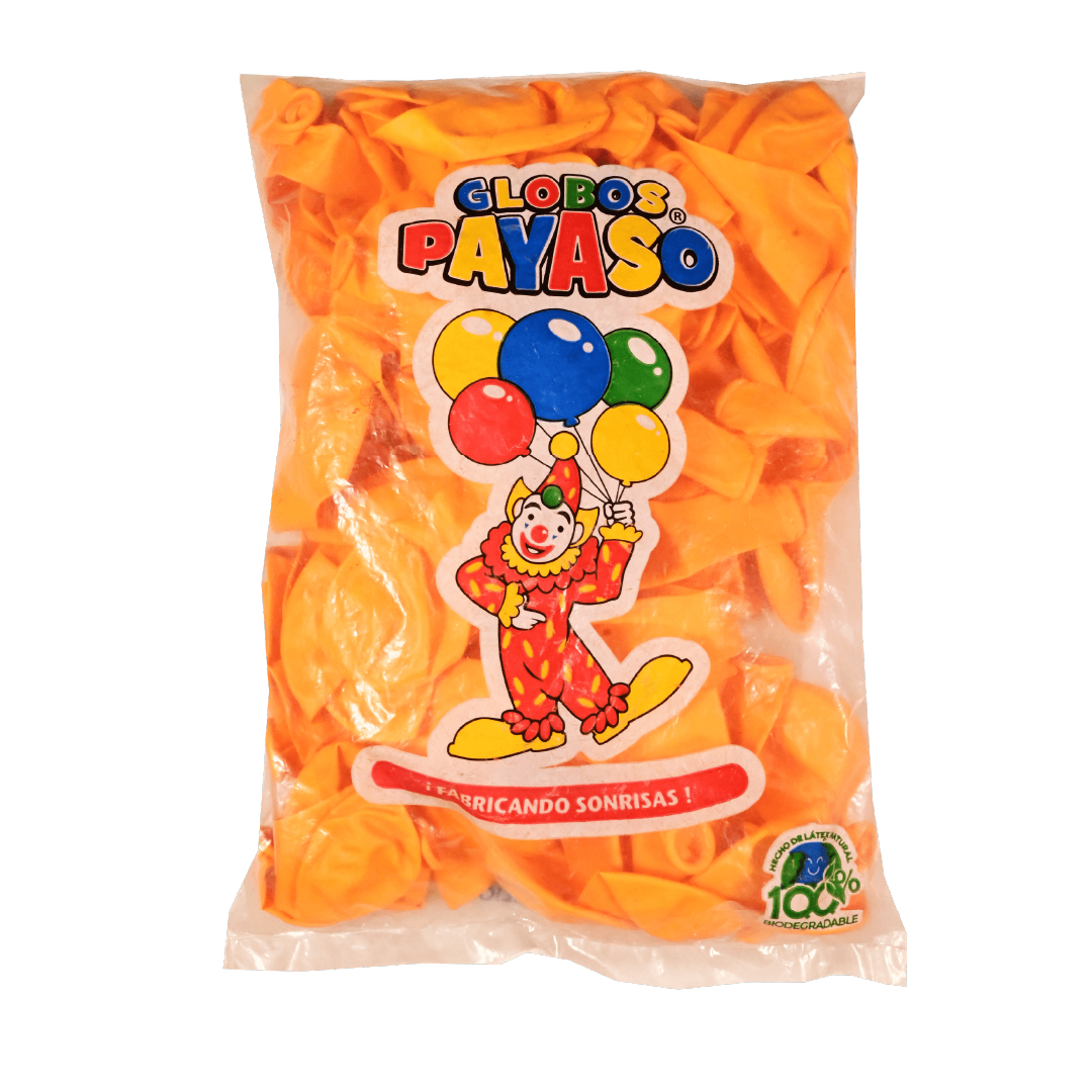 Globo liso de un solo color naranja marca Payaso